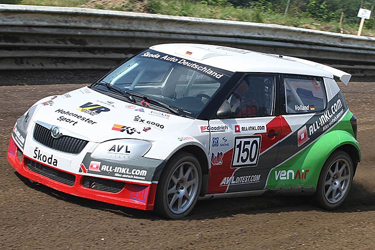 Insgeheim hat Volland sicher mit einem guten Platzierung bei seinem Gastspiel in der Rallycross-Europameisterschaft gerechnet. Im Frühjahr war er in der deutschen Meisterschaft zum ersten Mal mit seinem neuen Skoda Fabia auf dem Estering unterwegs. In einem der Qualifikationsheats schockte er damals die Konkurrenz mit einer Fabelzeit für die vier Runden à 950 Meter: 2:48,03 Minuten! Das war neuer Rekord für die Division 1A. Allerdings wusste Volland auch, dass es in der Europameisterschaft wesentlich härter und enger zugeht. Da wird Kampflinie – und nicht Ideallinie – gefahren!